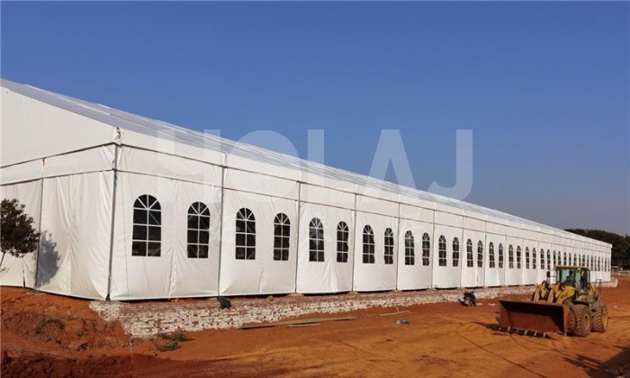 阻燃材料:篷房的搭建應(yīng)優(yōu)先選用具有良好阻燃特性的材料,如PVC材質(zhì)篷布,其阻燃等級(jí)可達(dá)國際標(biāo)準(zhǔn)B1級(jí),使用安全。